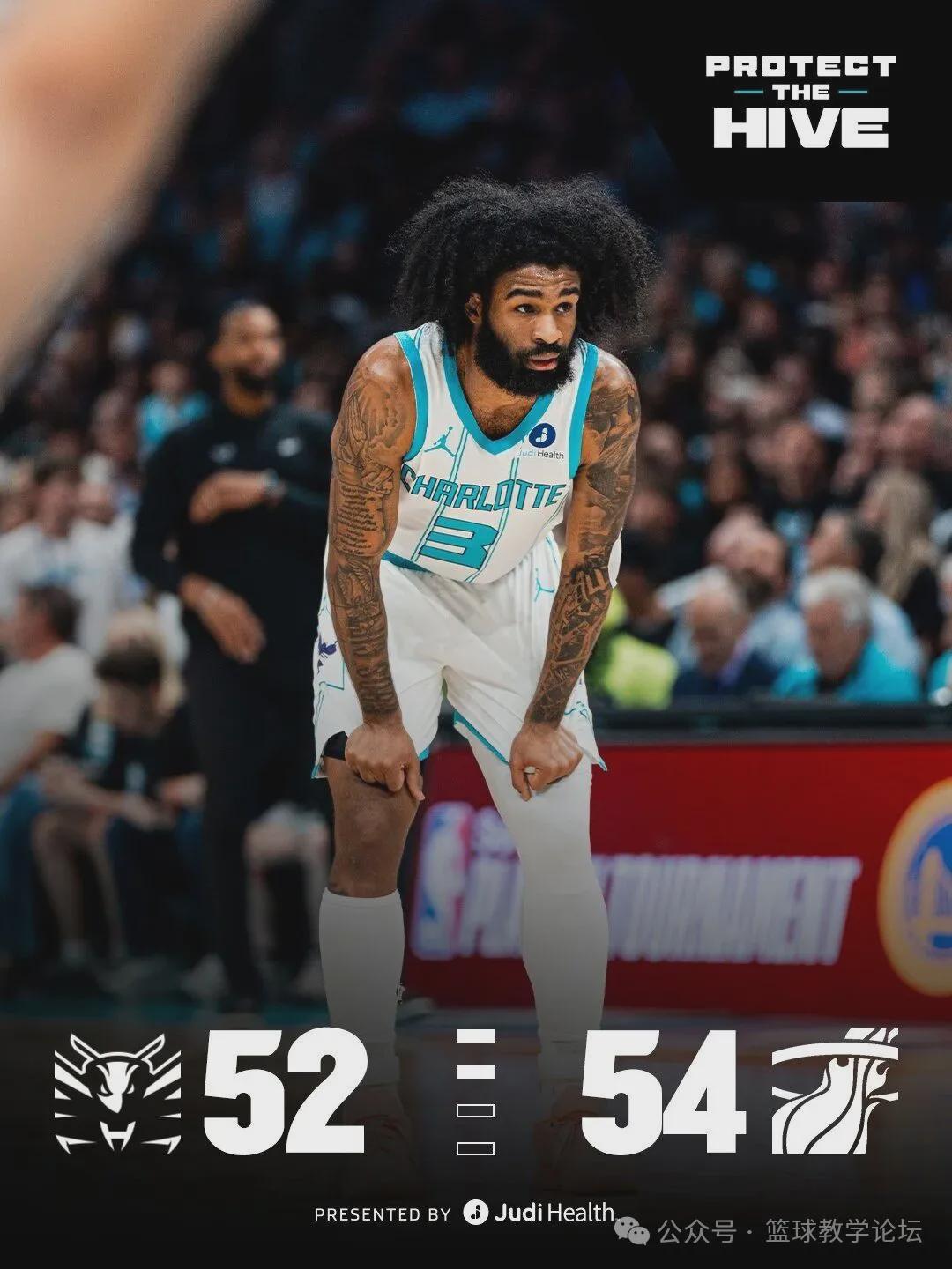 热火本场首发:小米切尔、希罗、维金斯、阿德巴约、韦尔。黄蜂首发:三球、布兰登-米勒、克尼佩尔、布里奇斯、迪亚巴特。克尼佩尔本赛季命中273记三分,险胜三球(272),成为常规赛三分王,今天克尼佩尔却迷失了。