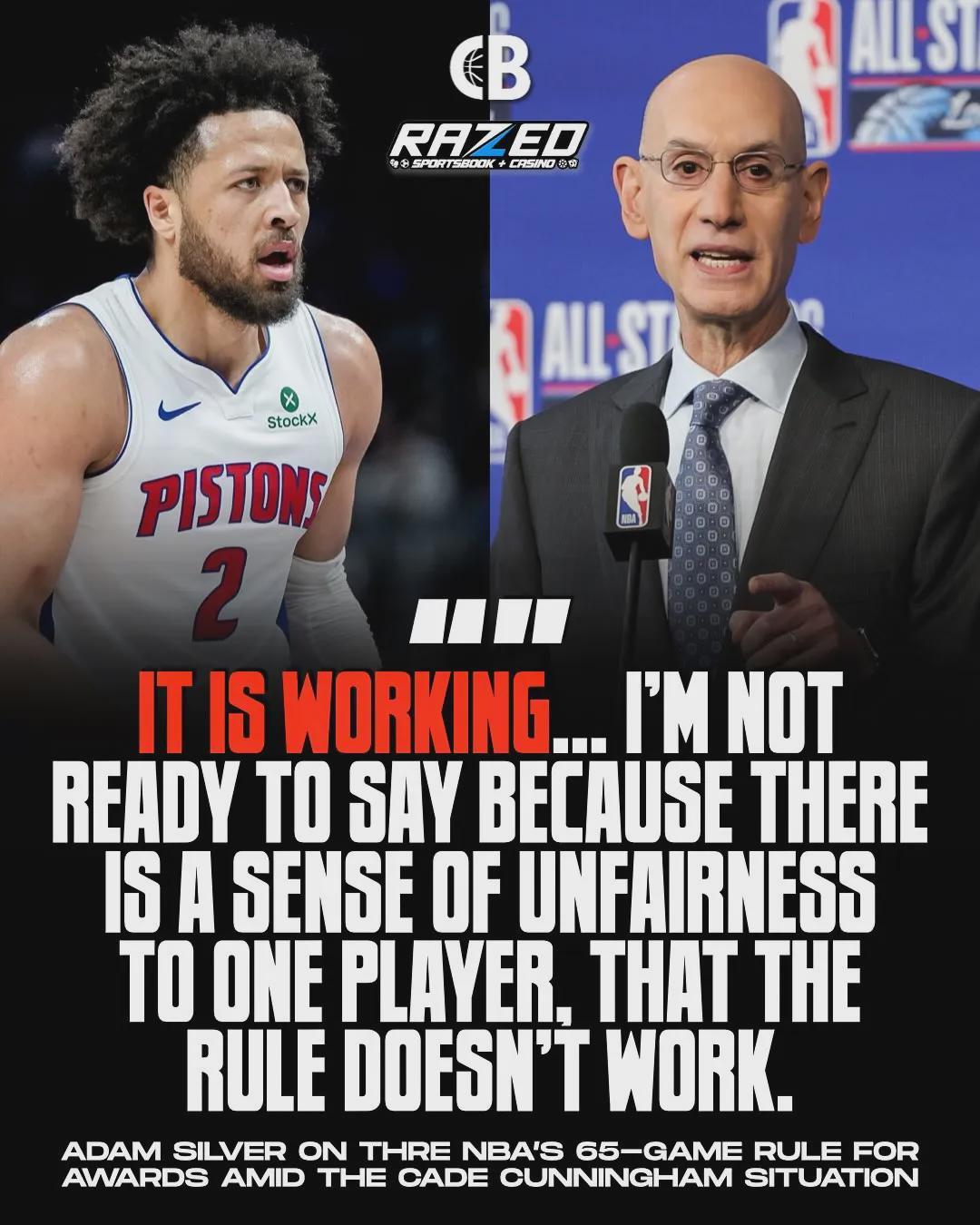 坎宁安本赛季打了64场常规赛,其中63场属于达标场次,另外一场出战不足15分钟。他能够申诉成功,是因为在收官阶段因“气胸”缺席了11场比赛。爱德华兹缺席只是因为普通伤病,并没有家庭原因或遭遇特殊疾病,且距离65场相差5场。