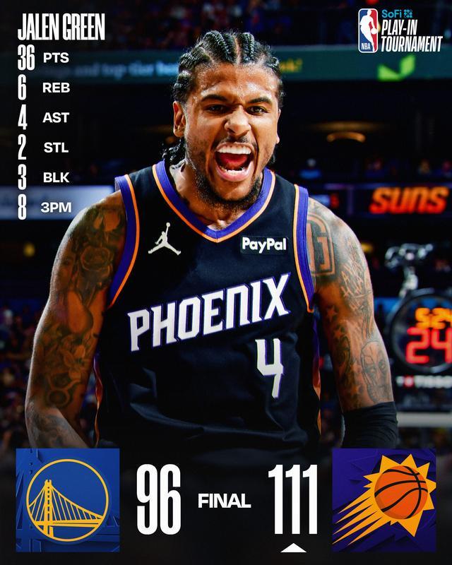 勇士出局!杰伦·格林狂飙8记三分,太阳锁定西部第八首轮战雷霆