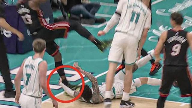 话说夏洛特黄蜂和迈阿密热火正在附加赛里杀得难解难分,两队都在为了晋级名额死磕,毕竟赢家就能去挑战76人和魔术之间的败者。但比赛打到上半场,拉梅洛·鲍尔就惹火烧身了——这回他是真把大家惹急了,因为他涉嫌弄伤了热火球星巴姆·阿德巴约。