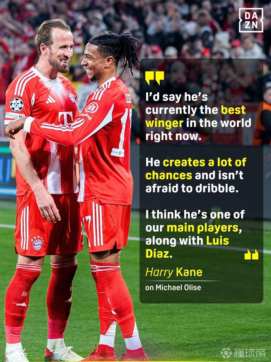 凯恩:我会说奥利塞是目前世界足坛的最佳边锋 发布时间:2026-04-17 01:21:00 | 浏览: 次 直播信号源 欧冠1/4决赛次回合,拜仁慕尼黑主场4-3逆转击败皇家马德里,凯恩和奥利塞各入一球,赛后,凯恩在接受DAZN的采访时表示,他认为奥利塞是目前世界足坛最佳边锋。赛后在谈到奥利塞时,凯恩说道:“我会说他现在是世界上最好的边锋。他能够创造大量机会,而且不惧于进行盘带突破。我认为他是我们队中的核心球员之一,和路易斯-迪亚斯一样重要。” 标签: 体育 PP体育 聚力体st育 英超直播 西甲 亚冠直播 欧冠直播 德甲直播 欧联杯 CBA 篮球直播 WWE直播 UFC直播 体育直播