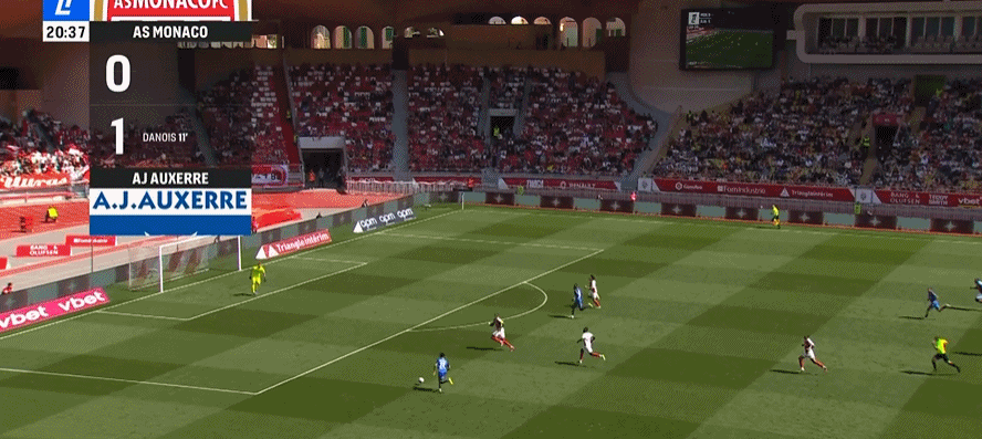 第11分钟,达努瓦禁区外不停球直接抽射破门!欧塞尔1-0摩纳哥