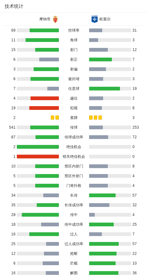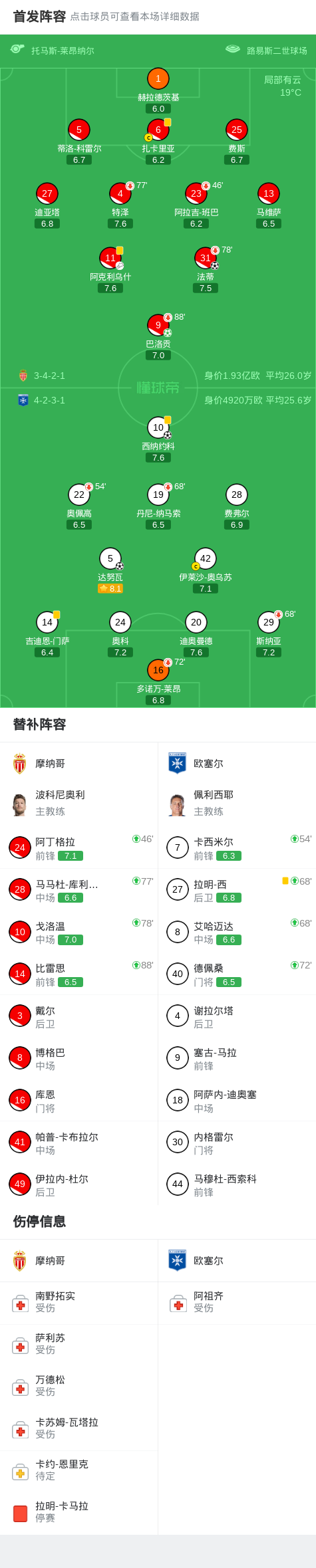 关键事件第11分钟,达努瓦禁区外不停球直接抽射破门!欧塞尔1-0摩纳哥