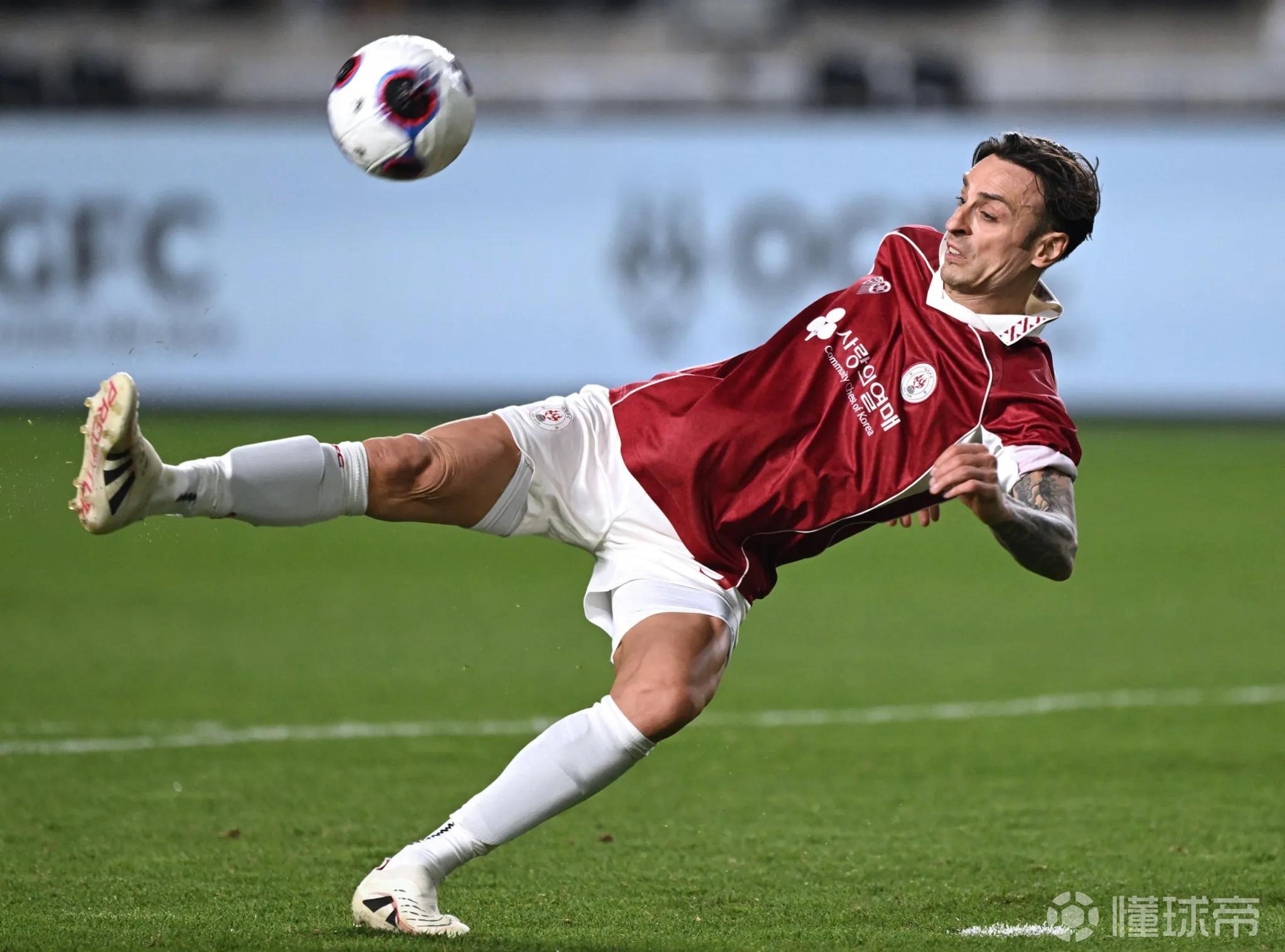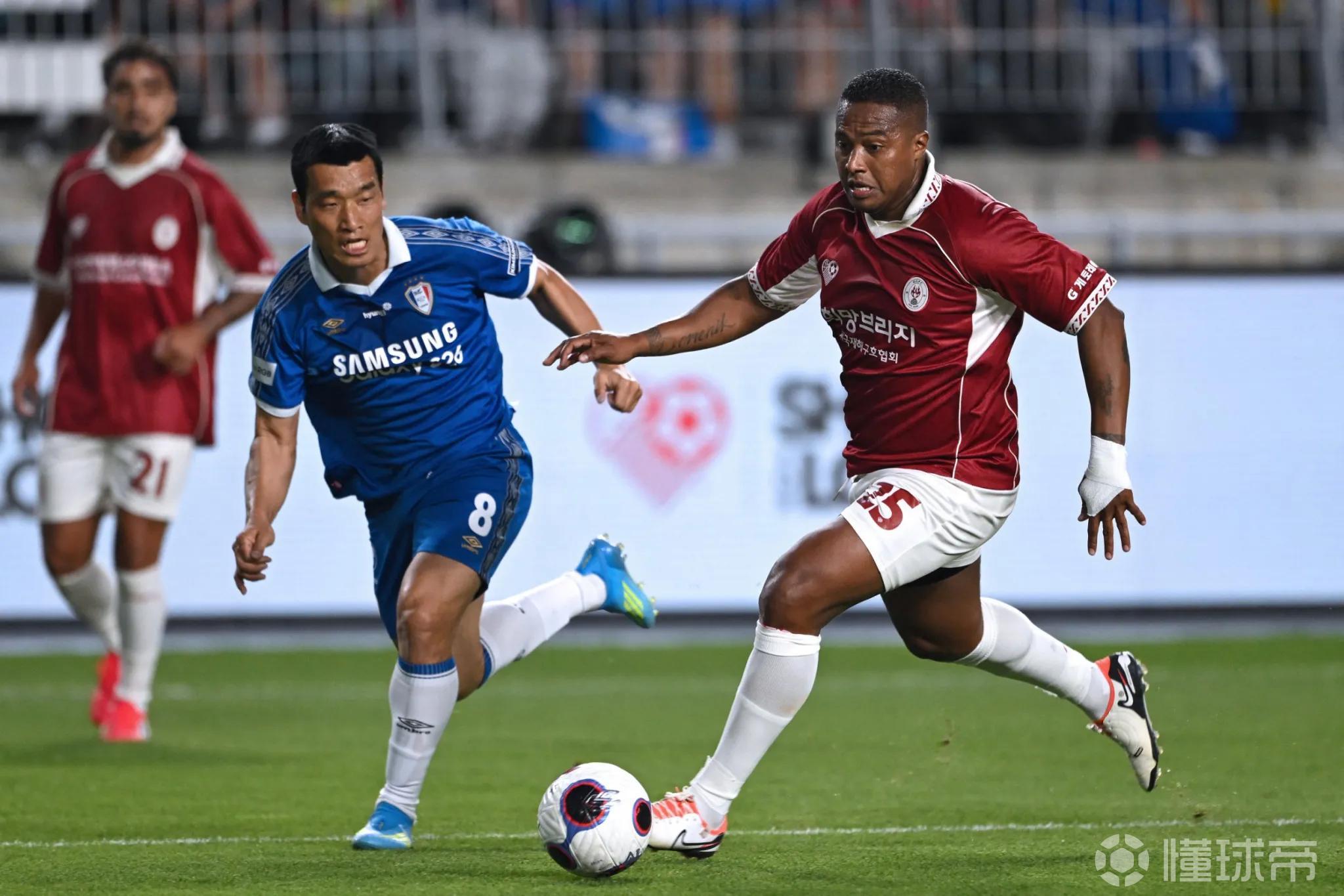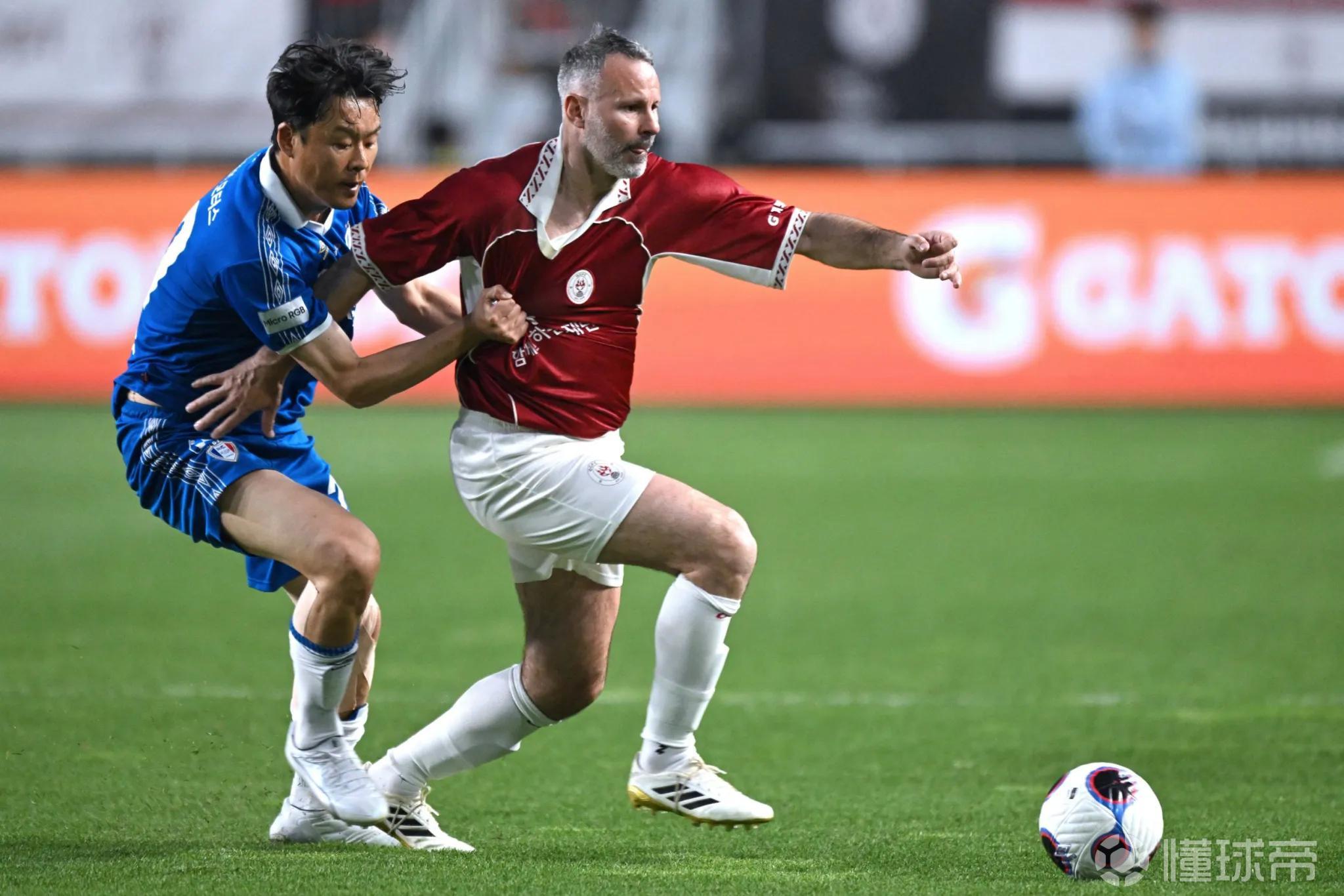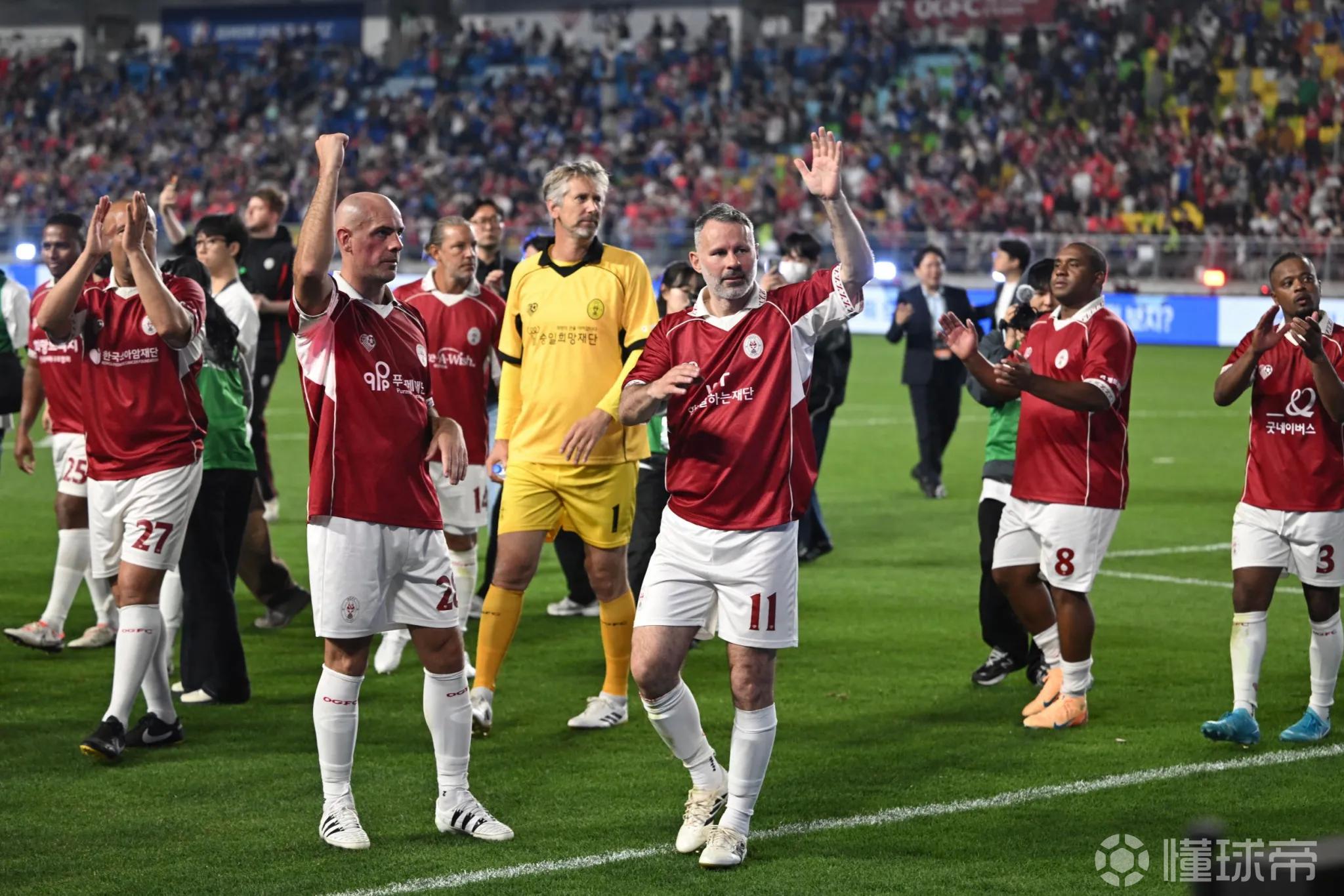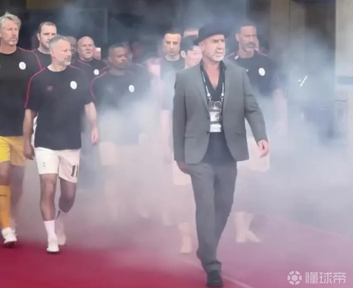 曼联传奇球员在韩进行友谊赛,坎通纳出场时西装革履派头十足