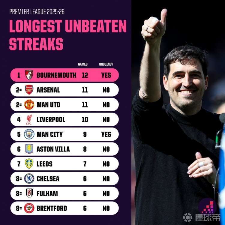 Opta统计本赛季英超连续不败场次最多的球队排名... 发布时间:2026-04-17 01:21:00 | 浏览: 次 直播信号源 Opta统计本赛季英超连续不败场次最多的球队排名,阿森纳、曼联、利物浦、切尔西、曼城等球队在列。伯恩茅斯--12*阿森纳--11 曼联--11 利物浦--10 曼城--9*维拉---8 利兹联--7 切尔西--6 富勒姆--6 布伦特福德--6 标签: 体育 PP体育 聚力体st育 英超直播 西甲 亚冠直播 欧冠直播 德甲直播 欧联杯 CBA 篮球直播 WWE直播 UFC直播 体育直播